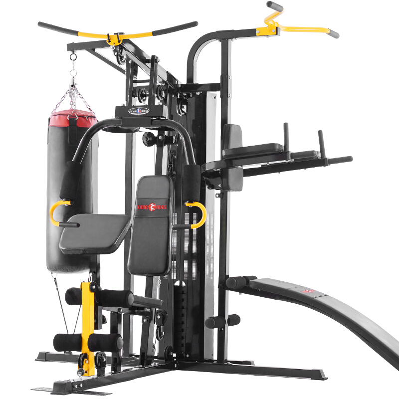 康強綜合訓練器G905X 9站位多功能健身房力量組合健身器材 G905X升級九合一訓練器,2021全新升級九站位多功能綜合訓練器,一台器材=9台專項訓練器,高位下拉/低拉/蝴蝶夾胸/坐式踢腿/雙杠提膝/推胸坐式蹬腿/腰部訓練/俯臥撐,精工打造,品質無憂,打造您的私人健身房,強大功能,滿足全身肌肉運動;專業訓練動作設計,針對每一塊肌肉進行訓練,拒絕運動妨礙,120°可折疊架,防止運動過程中掉落,整機重量/承重,櫓鐵,主要看重量,重量大才更穩。5檔推胸臂+3方位把位,N種訓練動作任您選擇,自由調節坐凳,蹬腿靠背4檔調節/夾胸坐墊4檔調節,重力滑輪組結構,專業力學滑輪組合,使有限配重達到雙倍效果,功能特點:推胸、高低拉、雙杠、蹬腿、曲腿、俯臥撐。可有效鍛煉胸大肌、背闊肌