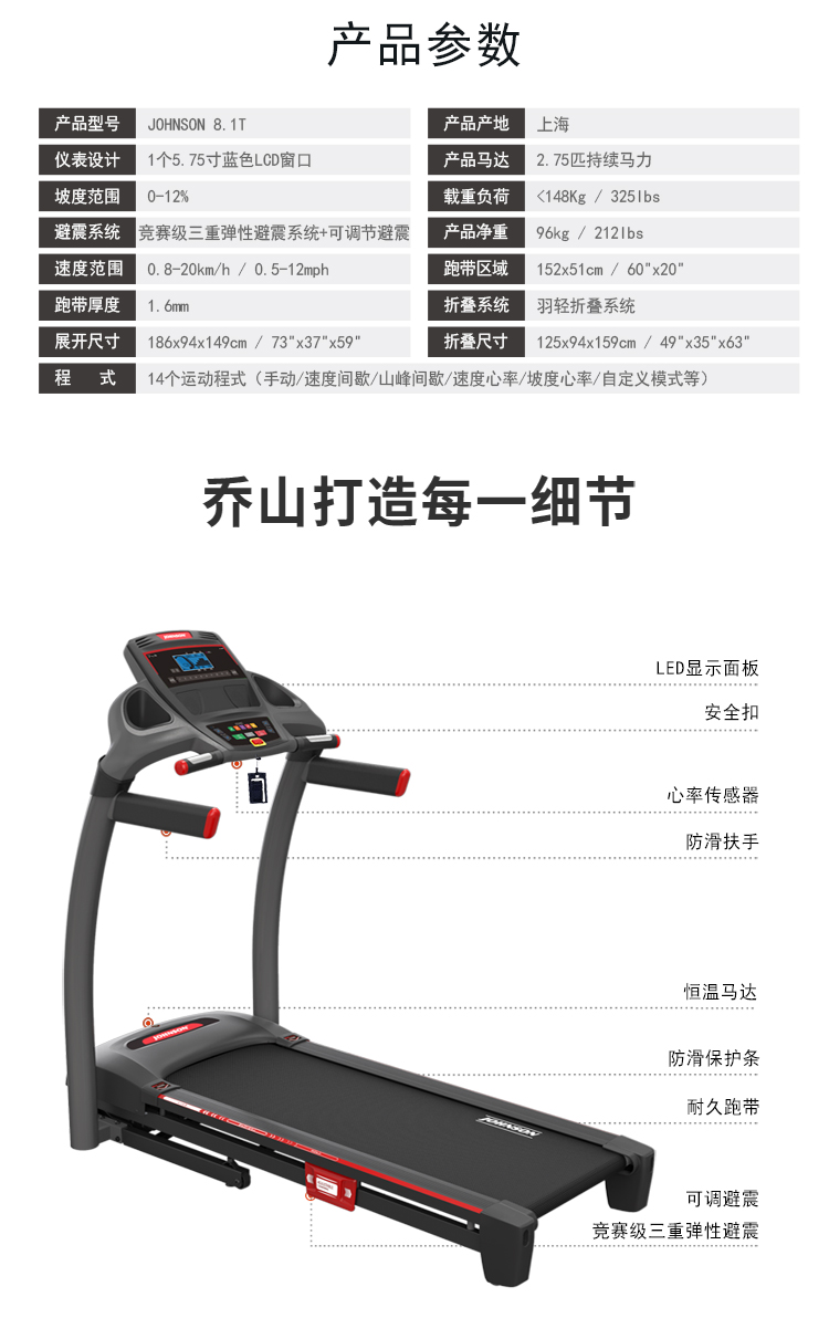 喬山JOHNSON樱桃视频免费8.1T PLUS升級款 高端折疊家用走步機
