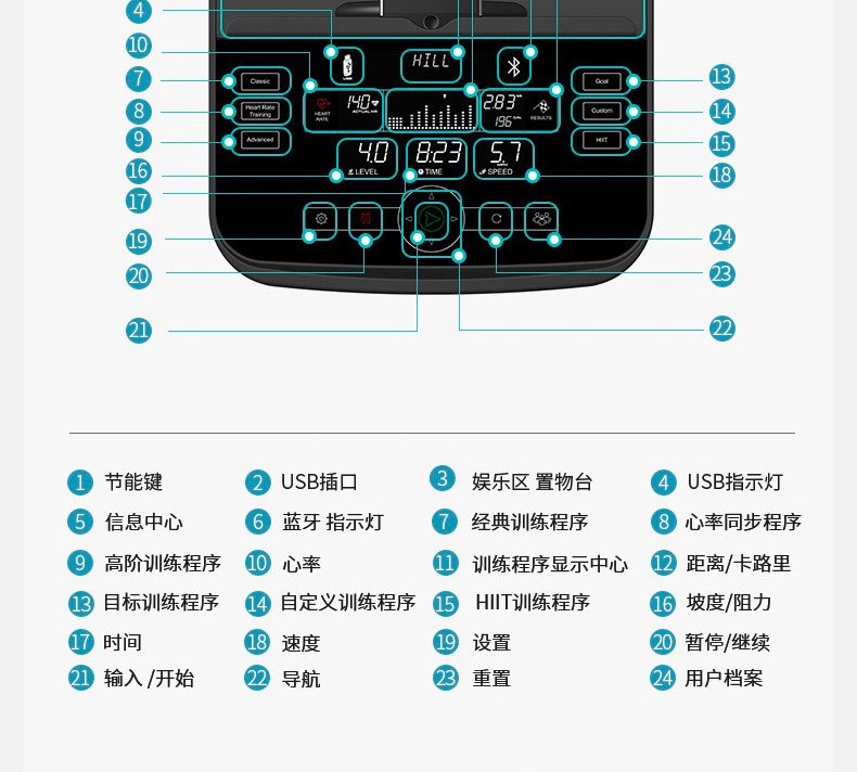 按鍵分布均勻,清晰明了,符合人體生物力學設計,尋找使用需求按鍵時方便快捷,及時調整運動狀態。